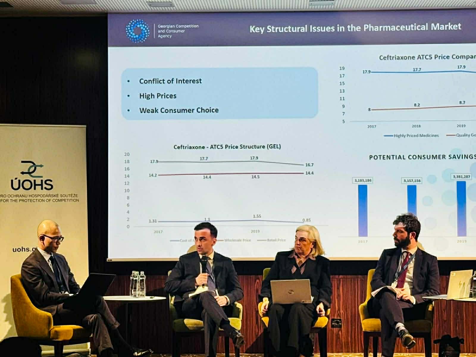 Discussions focused on key contemporary challenges in competition policy, with particular emphasis on the regulation of unilateral conduct and evolving enforcement approaches. Giorgi Kedelidze, Head of the Strategic Markets Monitoring Department, delivered a presentation entitled “Ex-Ante Enforcement in the Pharmaceutical Market”.